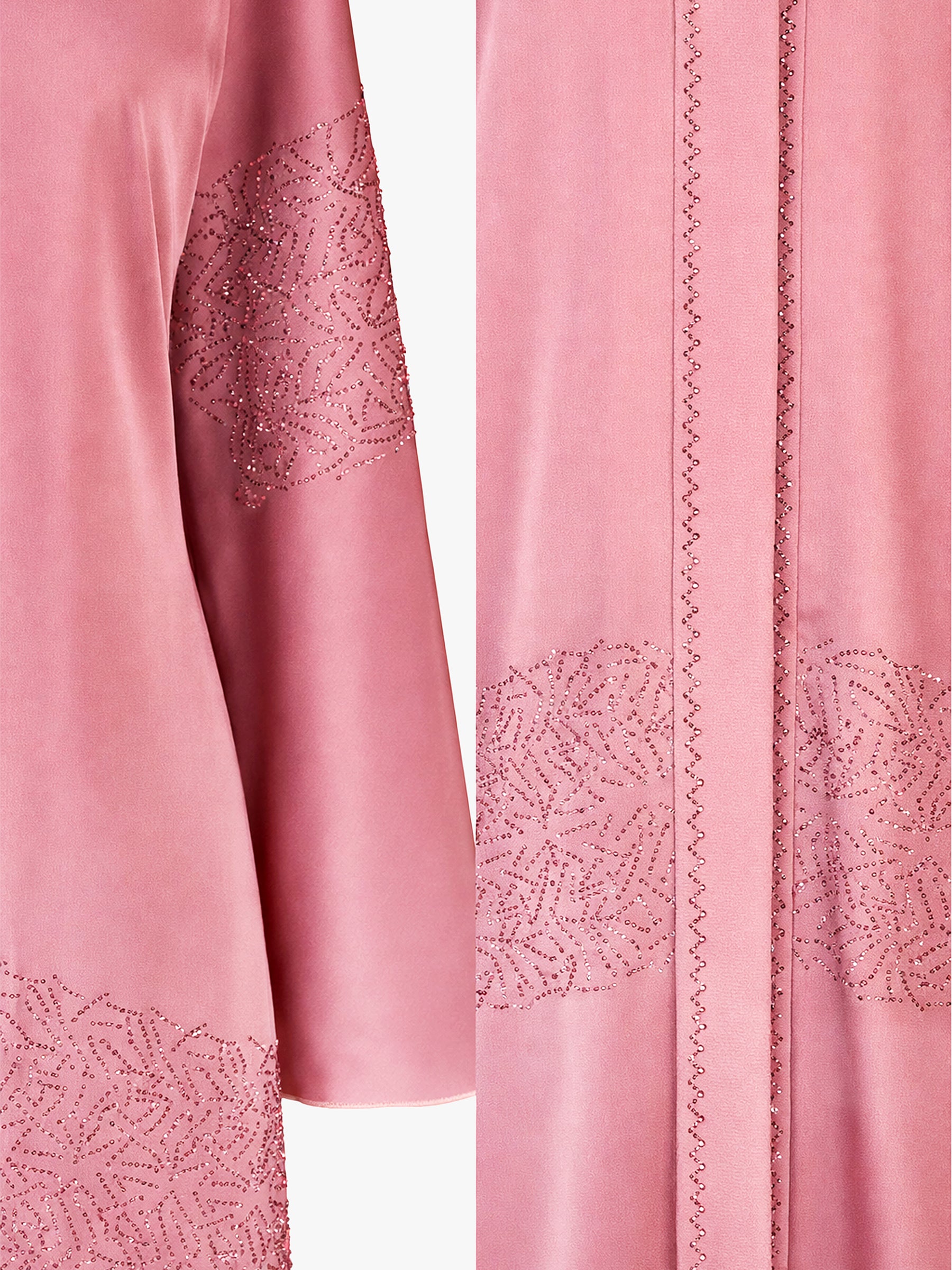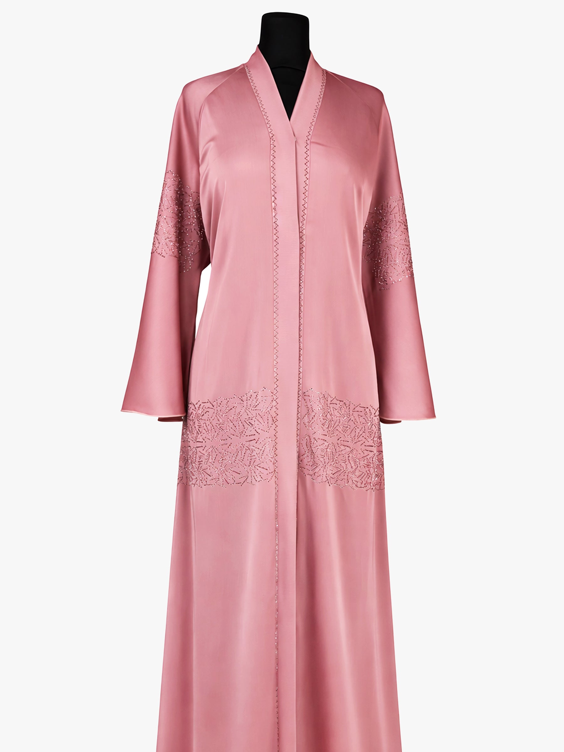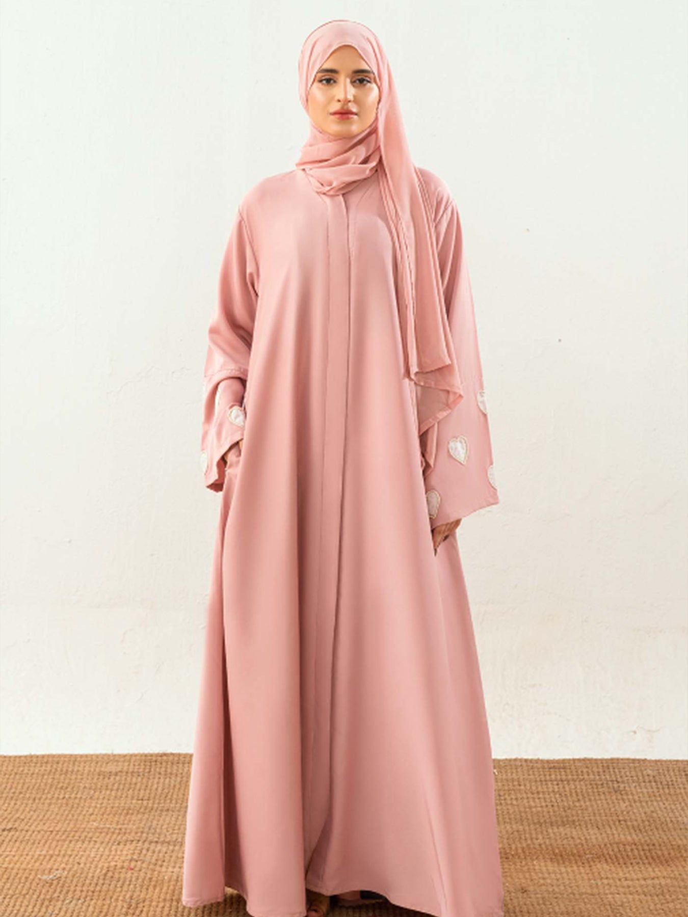 A soft, flowing abaya designed for effortless elegance. The Rose Veil Abaya features delicate embroidery that glides down the front, creating a refined silhouette that flatters every movement. Finished in a warm mauve tone, it is perfect for both special occasions and elevated everyday wear.