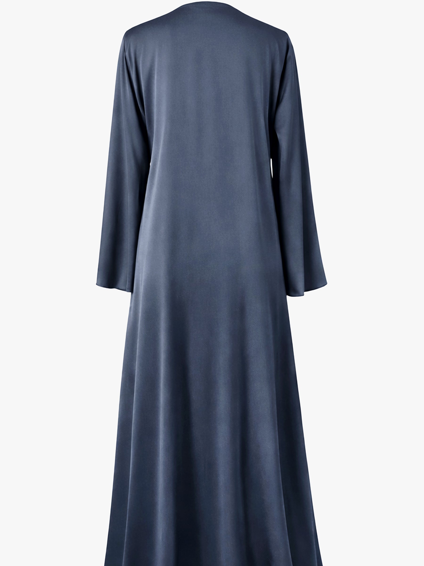 Crafted in a rich midnight blue, the Sapphire Drape Abaya is designed with a sleek front panel and modern metal detailing. Its flowing silhouette and refined finish make it an exquisite choice for contemporary modest fashion lovers.